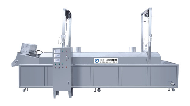 ·全不锈钢制造,自动程度高、有自动、手动起吊系统、独特的产品输送系统、排渣系统、加热系统、油循环系统、排烟系统、电控系统等组成。采用网带疏送产品变频或无级调速。